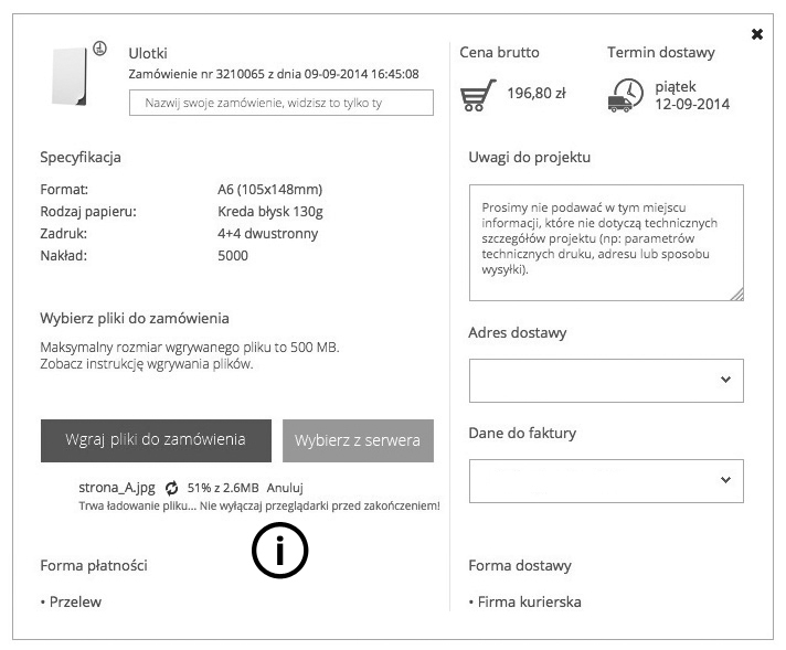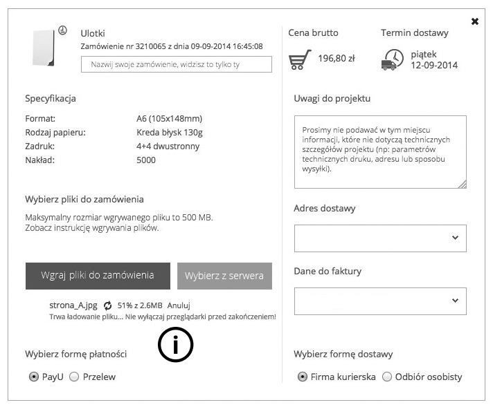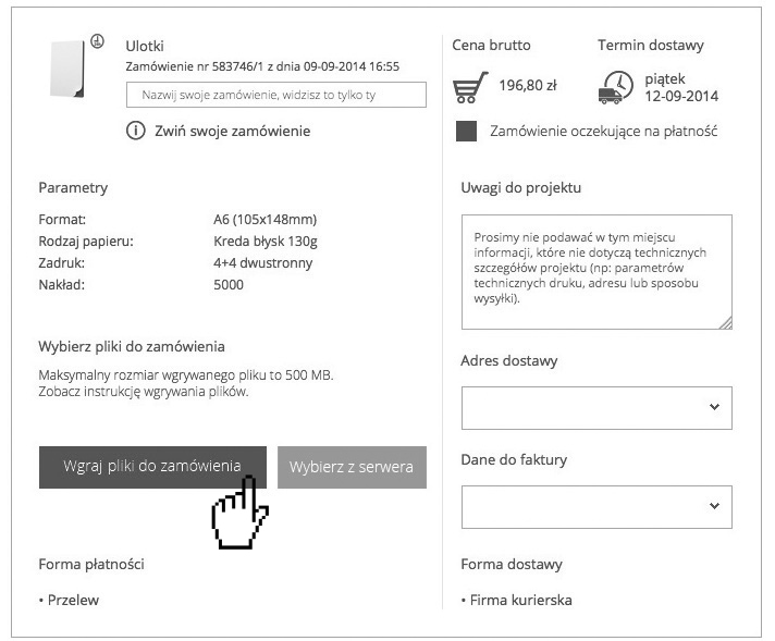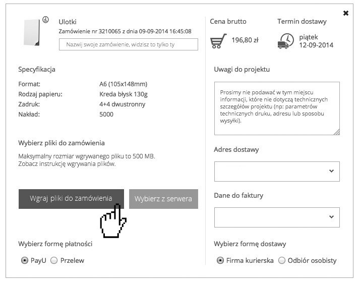 Kliknij przycisk "Wgraj pliki do zamówienia".