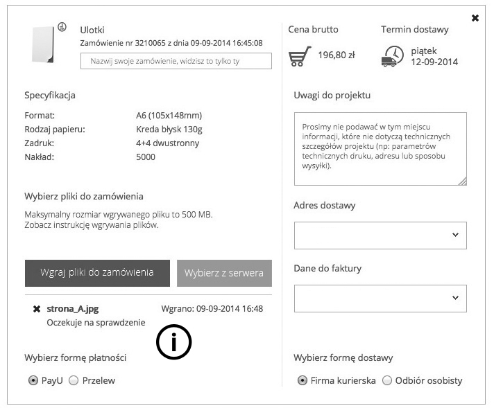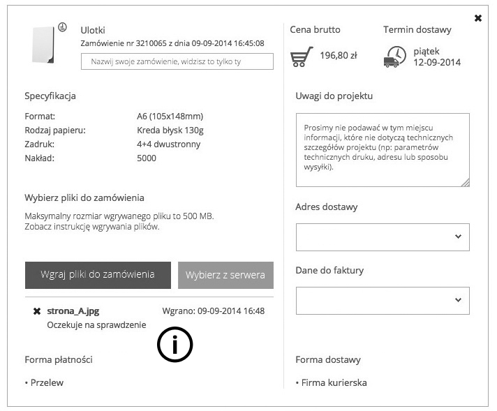 W ten sposób rozwiniesz szczegóły zamówienia i wgrasz pliki do druku.